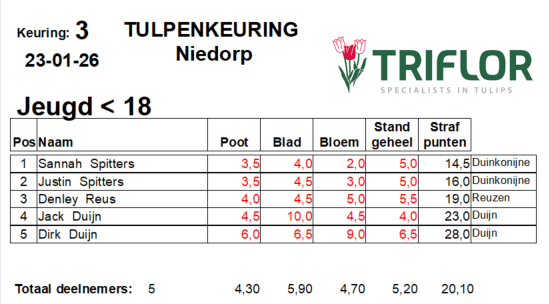De verschillen in strafpunten werden vooral bepaald door hoe nauwkeurig de afzonderlijke onderdelen werden ingeschat. Kleine afwijkingen in bijvoorbeeld bloem of stand werkten direct door in het eindtotaal. Opvallend was dat bij één beoordeling slechts één strafpunt op de poot werd gescoord, wat laat zien dat ook op detailniveau steeds gerichter wordt gekeurd.
